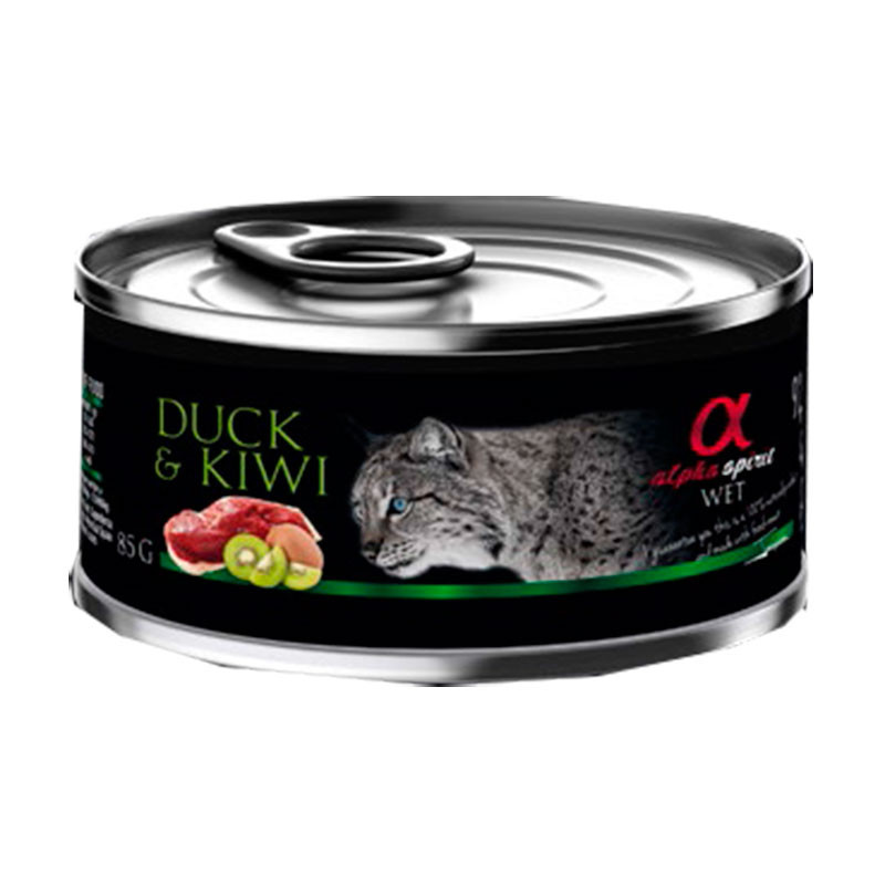 Composición: Pato 92% (carne 75%, hígado 17%), kiwi 4%, cloruro de sodio, carbonato de calcio, cloruro de potasio, xilosa.