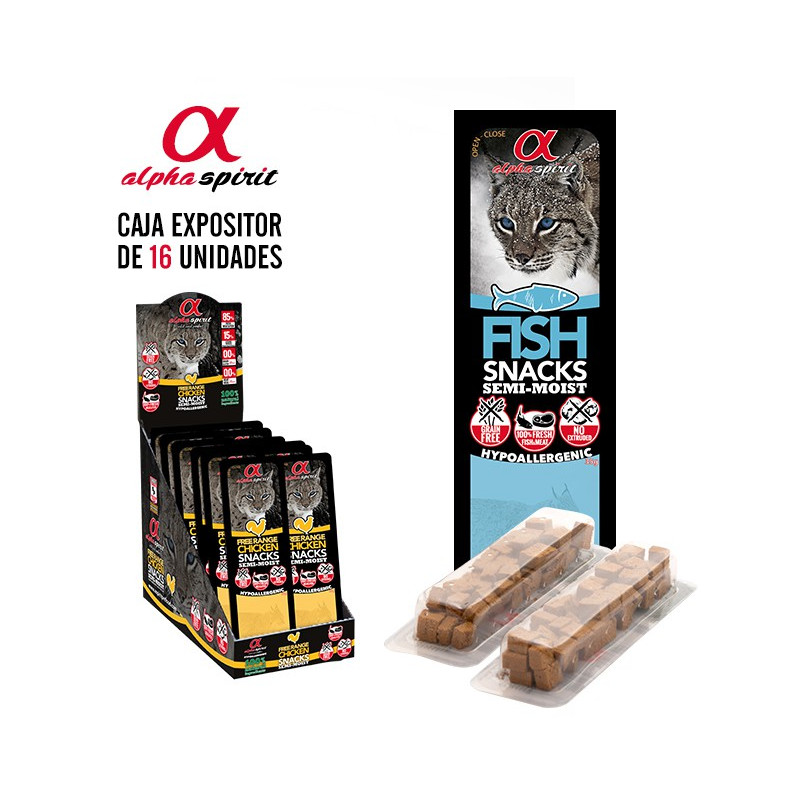 Los Snacks para gatos Alpha Spirit están envasados en unidades individuales que conservan el producto hasta un año y medio sin abrir y 30 días una vez abierto.