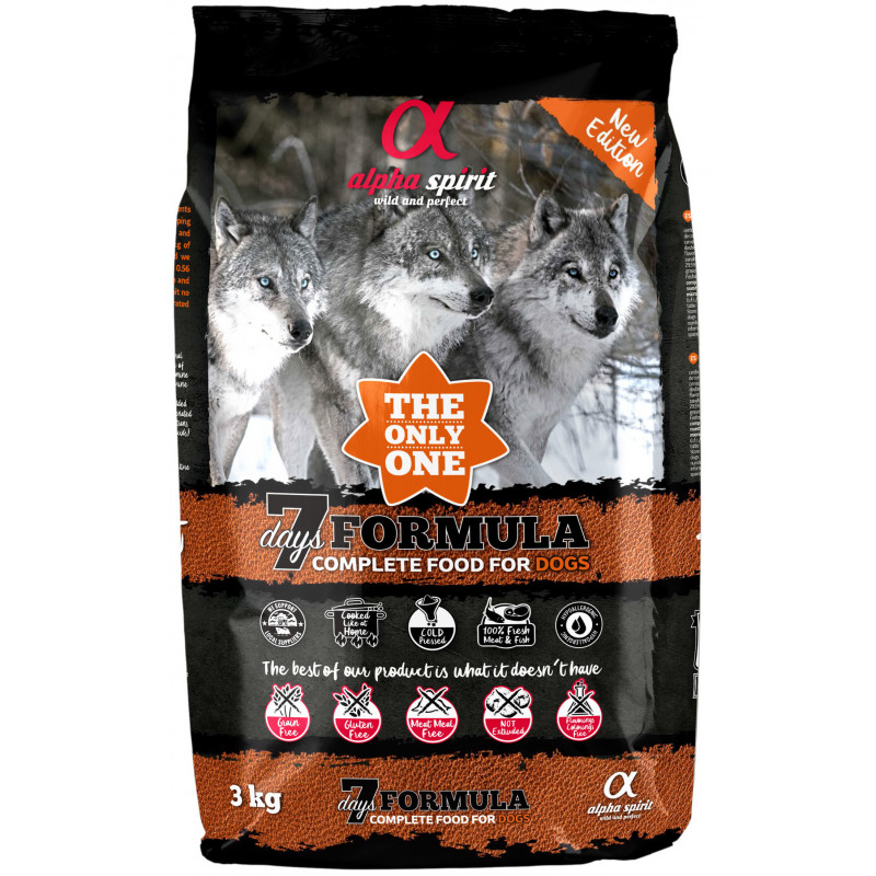 45% carne de cerdo fresca, 25% carne de pollo fresca, 10% pescado entero fresco (alacha (Sardinella aurita), caballa (Scomber scombrus), jurel (Trachurus spp.), sardina (Sardina pilchardus)), 5% hígado de cerdo fresco, almidón hidrolizado, huevos, pulpa de Beta vulgaris, levadura de cerveza (Saccharomyces cerevisiae), boniato, plátano, alcaravea (Carum carvi), comino (Cuminum cyminum), salvia (Salvia officinalis), cúrcuma (Curcuma longa), jengibre (Zingiber officinale).
