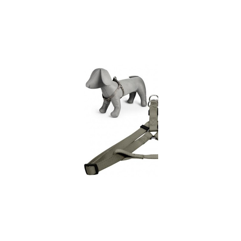Arnés de nylon para perros. Destaca su diseño, comodidad y resistencia. Medida:20 mm x 46-75 cm. Color gris.