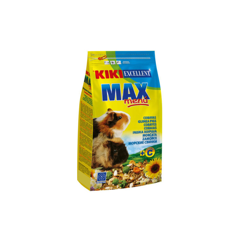 KIKI MAX MENÚ para cobayas es un alimento completo de alta calidad que ha sido formulado para aportar todos los nutrientes esenciales en gran cantidad. Su uso continuado mantendrá en perfecto estado de salud a su cobaya proporcionándole más calidad de vida y una mayor longevidad.